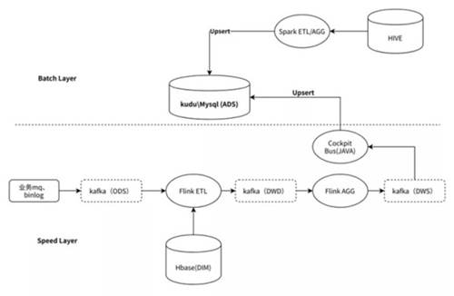 实时计算层:利用Flink/SparkStreaming完成实时数据的ETL(包括维度扩充,多流Join,实时汇总)等;